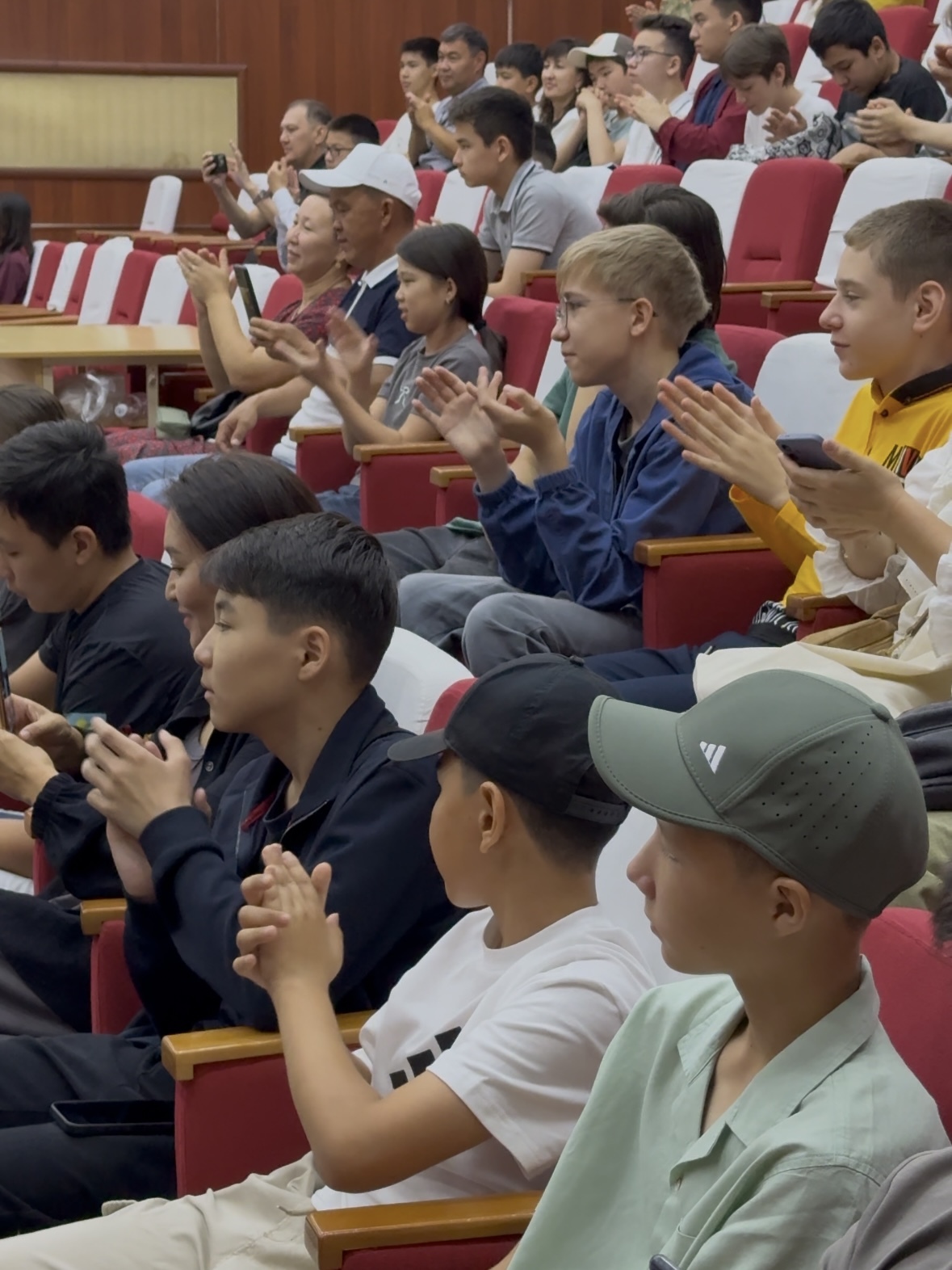 Төлегенов Балқыбай Молдаханұлы - брат академика Шалтая Смагуловича Смагулова поздравил всех присутствующих с успешным завершением олимпиады и под бурные аплодисменты вручил кубки победителям командного турнира.