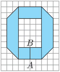 Есеп №14. Асан тіктөртбұрыш пішінді жолақты иіп, О әрпін жасады (суретте ұяшықтың қабырғасы 1-ге тең, ал $AB$ — жолақтың ұштарын желімдеу сызығы). Бастапқыда жолақтың периметрі қандай боған?