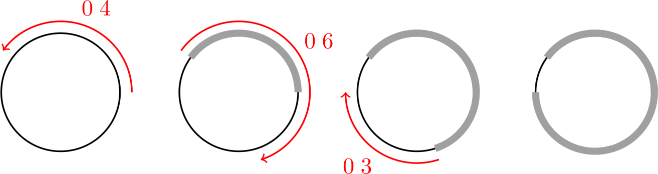 Задача №4. Улитка Турбо сидит в некоторой точке окружности длиной 1. Дана бесконечная последовательность действительных положительных чисел $c_{1}, c_{2}, c_{3}, \ldots$. Турбо последовательно проползает расстояния $c_{1}, c_{2}, c_{3}, \ldots$ по этой окружности, каждый раз выбирая ползти ли ей по часовой стрелке или против часовой стрелки.