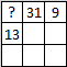 Задача №4. Магический квадрат — это таблица $3 \times 3$, в которой расставлены числа так, что суммы по всем строкам, столбцам и двум главным диагоналям одинаковы. На рисунке изображен магический квадрат, в котором все числа, кроме трёх, стёрты. Найдите, чему равно число в левом верхнем углу квадрата.