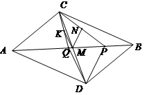 Комментарии от администратора Комментарии от администратора №1. Ответ. $40 ^\circ $. Решение. Достроим треугольник до параллелограмма $ACBD$. Тогда $M$ является серединой отрезка $CD$. Так как $AP = BC = AD$ и $BQ = AC = BD$, треугольники $APD$ и $BQD$ — равнобедренные. Поэтому $\angle QDP = \angle ADP+\angle BDQ - \angle ADB= (90^\circ - \angle DAB/2)+(90^\circ - \angle DBA/2) - 100^\circ = 80^\circ- \angle DAB+\angle DBA)/2 = 40 ^\circ $. Осталось заметить, что $\angle QDP = \angle KMN$, так как $MK$ и $MN$ — средние линии треугольников $DQC$ и $DPC $ соответственно.