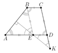 Комментарии от администратора Комментарии от администратора №1. Решение. Отложим на луче $DA$ отрезок $DE = BC$. Тогда четырёхугольник $DCBE$ — параллелограмм, поэтому $\angle CBE = \angle CDE$. Используя условие, получаем $\angle ABE = \angle ABC -\angle CBE = \angle ABC -\angle CDE = \angle BAE$; значит, треугольник $ABE$ — равнобедренный, $AE = BE$. Далее, поскольку $ED = BC = KD$, получаем $\angle KED = \angle EKD = \angle CDE/2$. Так как $\angle AEB = \angle CDE$, прямая $KE $ является биссектрисой угла $AEB$ и, тем самым, серединным перпендикуляром к основанию $AB$ равнобедренного треугольника $AEB$. Поэтому точка $K$ равноудалена от концов отрезка $AB$, что и требовалось доказать.