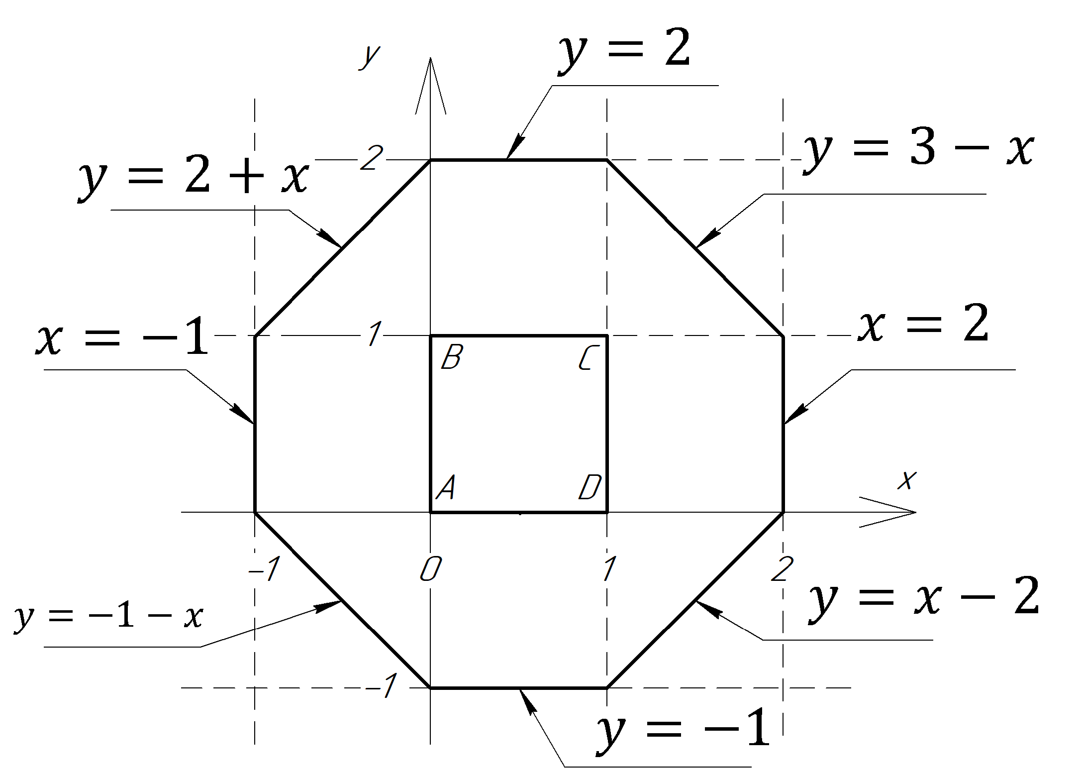 Дан квадрат со стороной 1. Найти множество всех точек, сумма расстояний от которых до сторон этого квадрата или их продолжений равна 4.