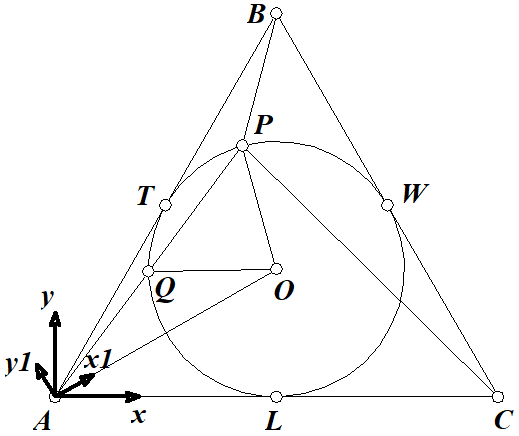 1) Рассмотрим $\Delta AOP$, где $O -$ центр вписанной в $\Delta ABC$ окружности. Примем $r_{\Delta ABC} = r$ известным.
