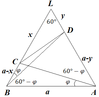 5) Пусть $LC = x; LD = y;$ Тогда $BC = BL- CL = a-x; AD = AL - DL = a - y$