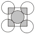 На рисунке изображены квадрат и пять одинаковых касающихся кругов. Вершины квадрата совпадают с центрами внешних кругов. Тогда отношение площади закрашенной части кругов к площади их не закрашенной части равно?