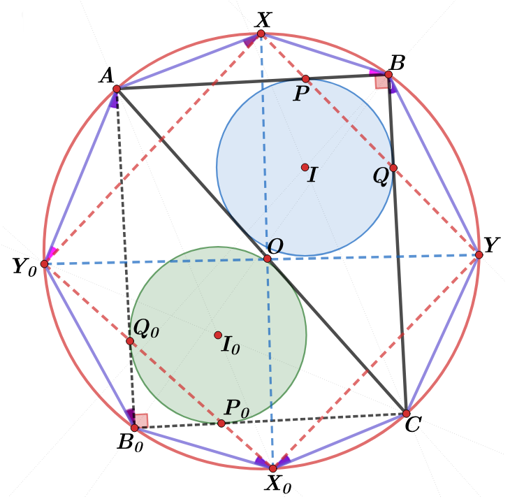 $$ \Rightarrow XAY_0=XBY=135^o $$