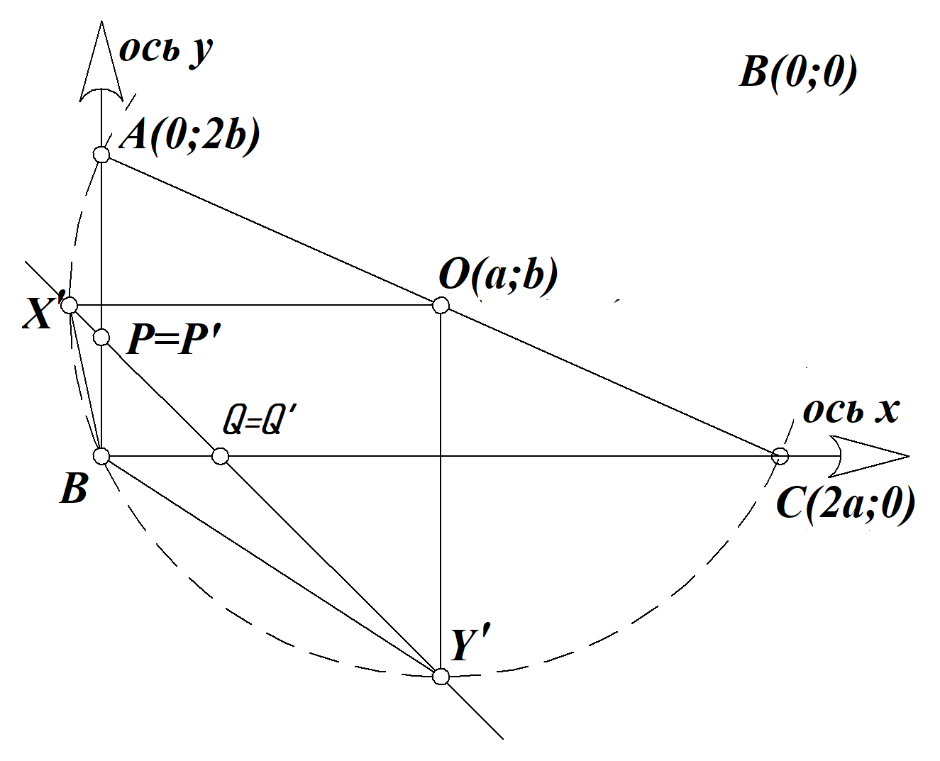 5)Пусть $OY'\bot BC;OX'\bot AB;$, точки $X';Y'$ лежат на описанной окружности