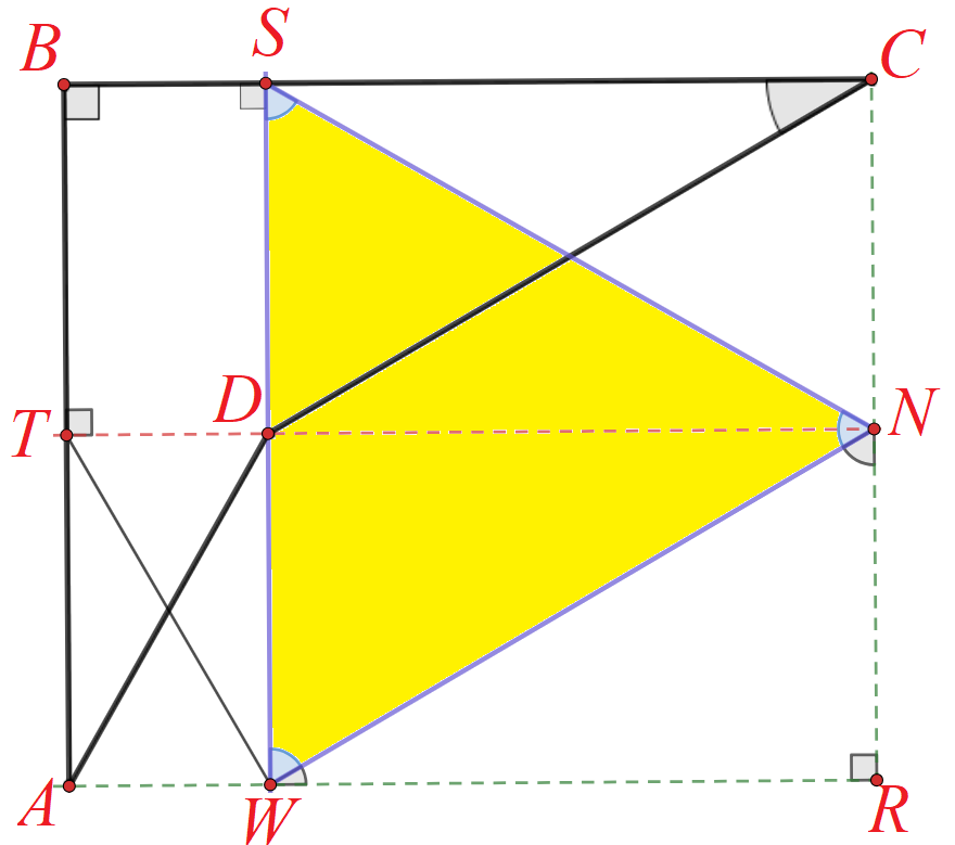 $$ \triangle TWN: TN=BC=2AD=2TW, \quad TNW \angle=30^o \Rightarrow WTN = 60^o$$
