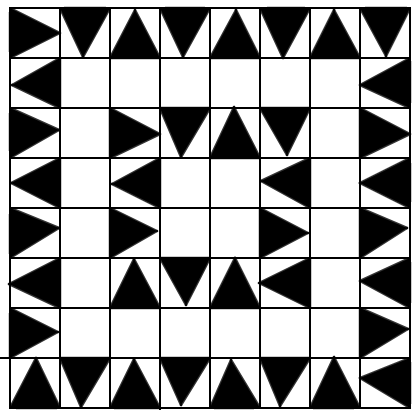 Решение. Оценка. На стороне каждого треугольника лежит не менее двух вершин клеток, всего вершин $9\cdot 9=81.$ Тогда всего треугольников не более 40, а свободных клеток не менее 24. Пример. Чередуются заполненные и незаполненные концентрические кольца (см. рисунок).