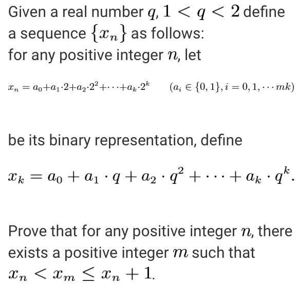 Given a real number $q$, $1 < q < 2$ define a sequence $ \{x_n\}$ as follows:
