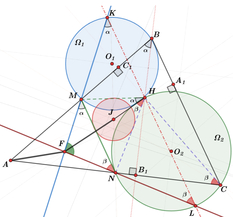 $$ \Omega_3: \angle FHN =\angle NMF \Rightarrow \alpha=\beta$$
