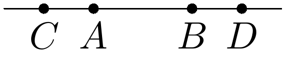 Решение. Пусть дома находятся в точках $A$ и $B$, машина в полдень находилась в точке $C$, а через 10 минут — в точке $D$ (см. рис.). По условию $CA+CB = DA+DB = 10$. Заметим, что $CA+CB = 2CA+AB,$ а $DA+DB = 2DB+AB,$ откуда $CA = DB.$ Поэтому $CD = CA+AB+BD = 2CA+AB = 10$ км. Получается, что за 10 минут машина проехала 10 километров. Поэтому за 60 минут она проедет 60 км.