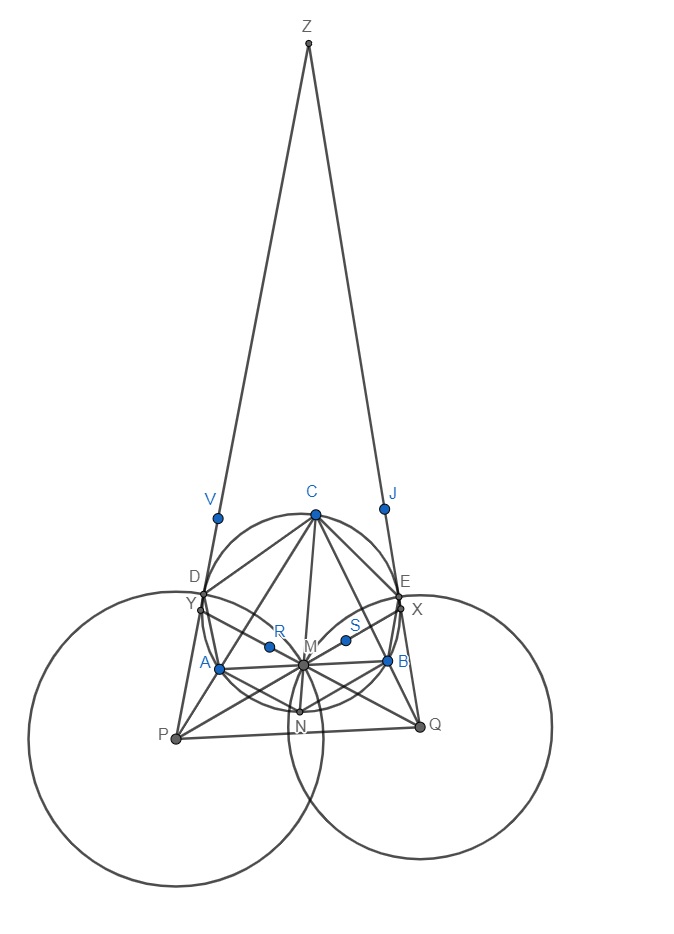 Выше показано почему $PD=PM$ и $QE=QM$. (Тут $D-$ точка касания отрезка $PY$, аналогично с $E$).