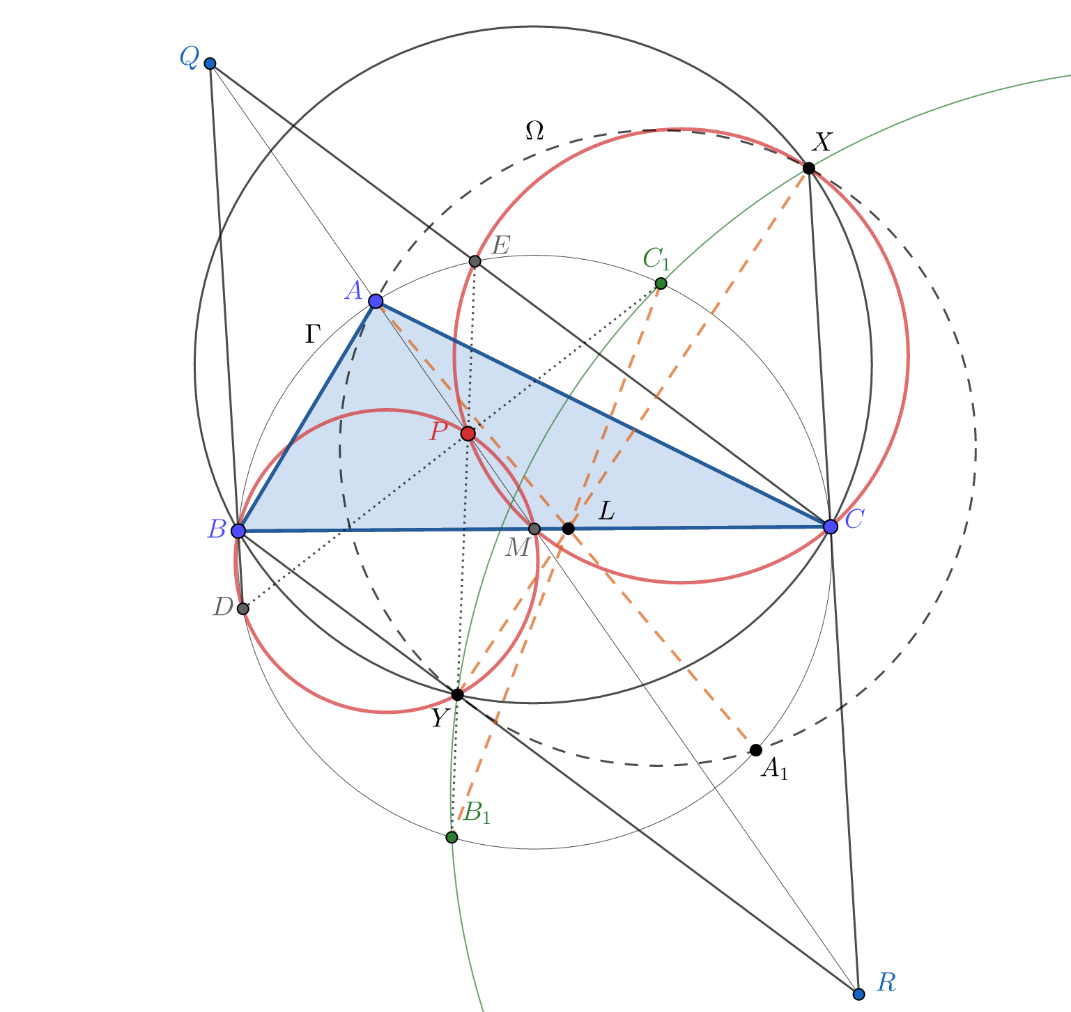 Значит точки $B,C,X,Y$ лежат на одной окружности - $ω$.