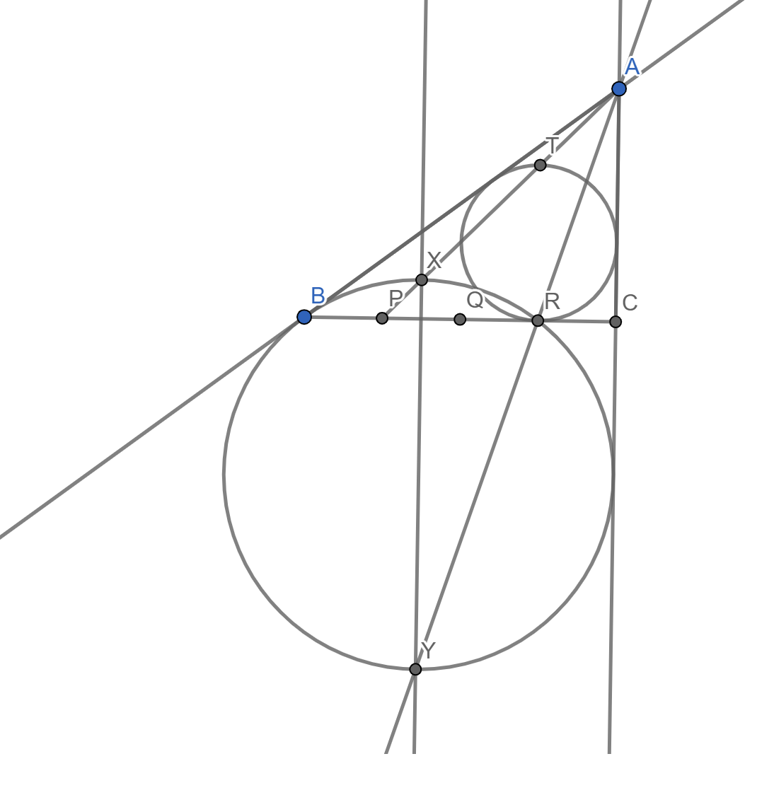 Тогда при гомотетии с коэффициентом $AY/AR$ из $A$, вписанная окружность перейдет в $\omega_1$ и по Лемме 1 , XY - ее диаметр. Легко заметить, что $\omega_1$ и есть искомая окружность, что завершает доказательство.