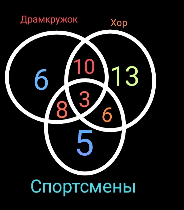 Жаздық лагерьде 70 бала бар. Олардың 27-сі драма үйірмесіне қатысады, 32-сі хорда ән айтады, ал 22-сі спортпен шұғылданады. Драма үйірмесінде 10 бала хордан, хорда 6 спортшы, драма үйірмесінде 8 спортшы; 3 спортшы хорғада және драма үйірмесінеде қатысады. Хорда ән айтпайтын, спортпен шұғылданбайтын және драма үйірмесіне қатыспайтын қанша бала бар?