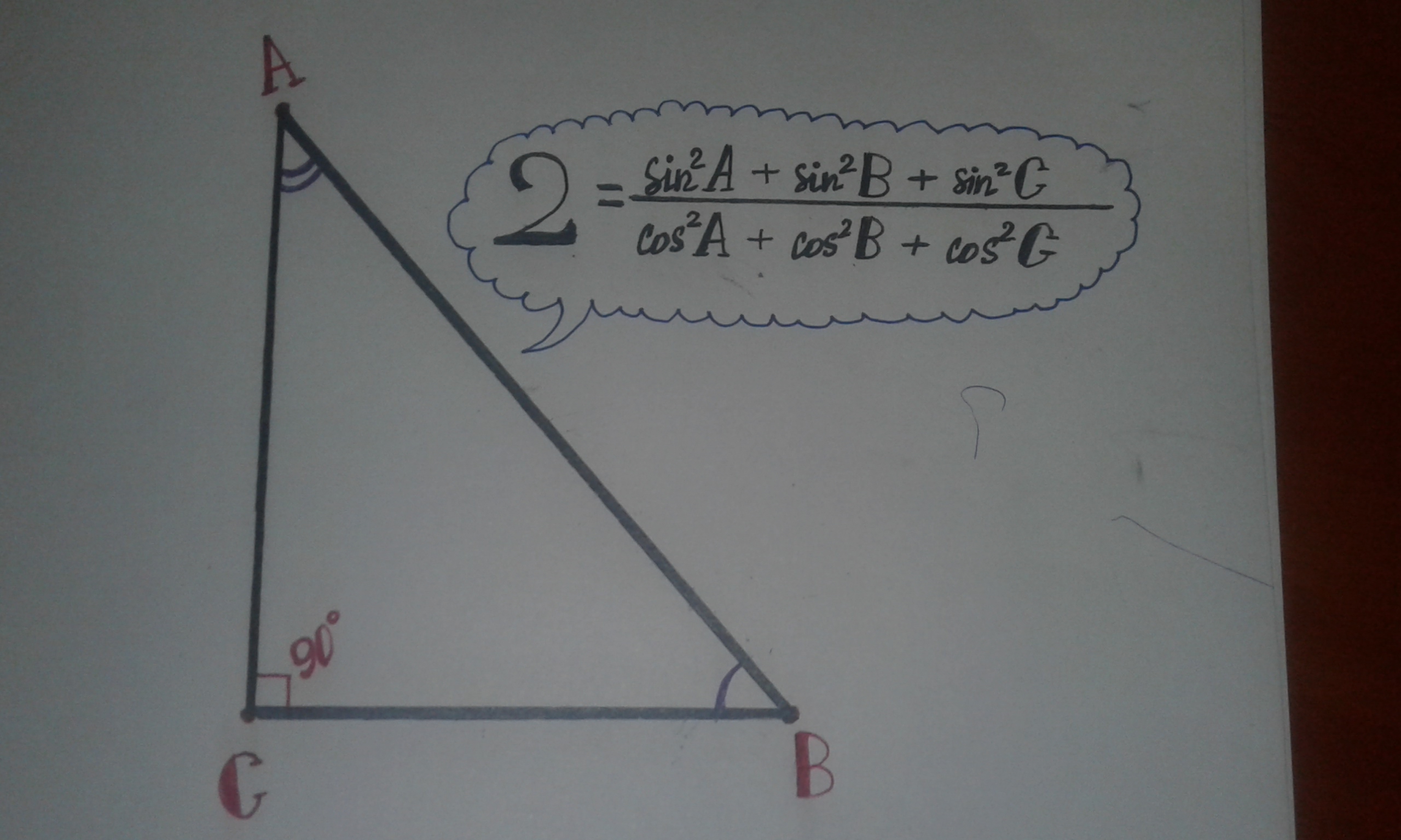$$\frac{3-(cos^2A+cos^2B+cos^2C)}{cos^2A+cos^2B+cos^2C}=2\Rightarrow$$