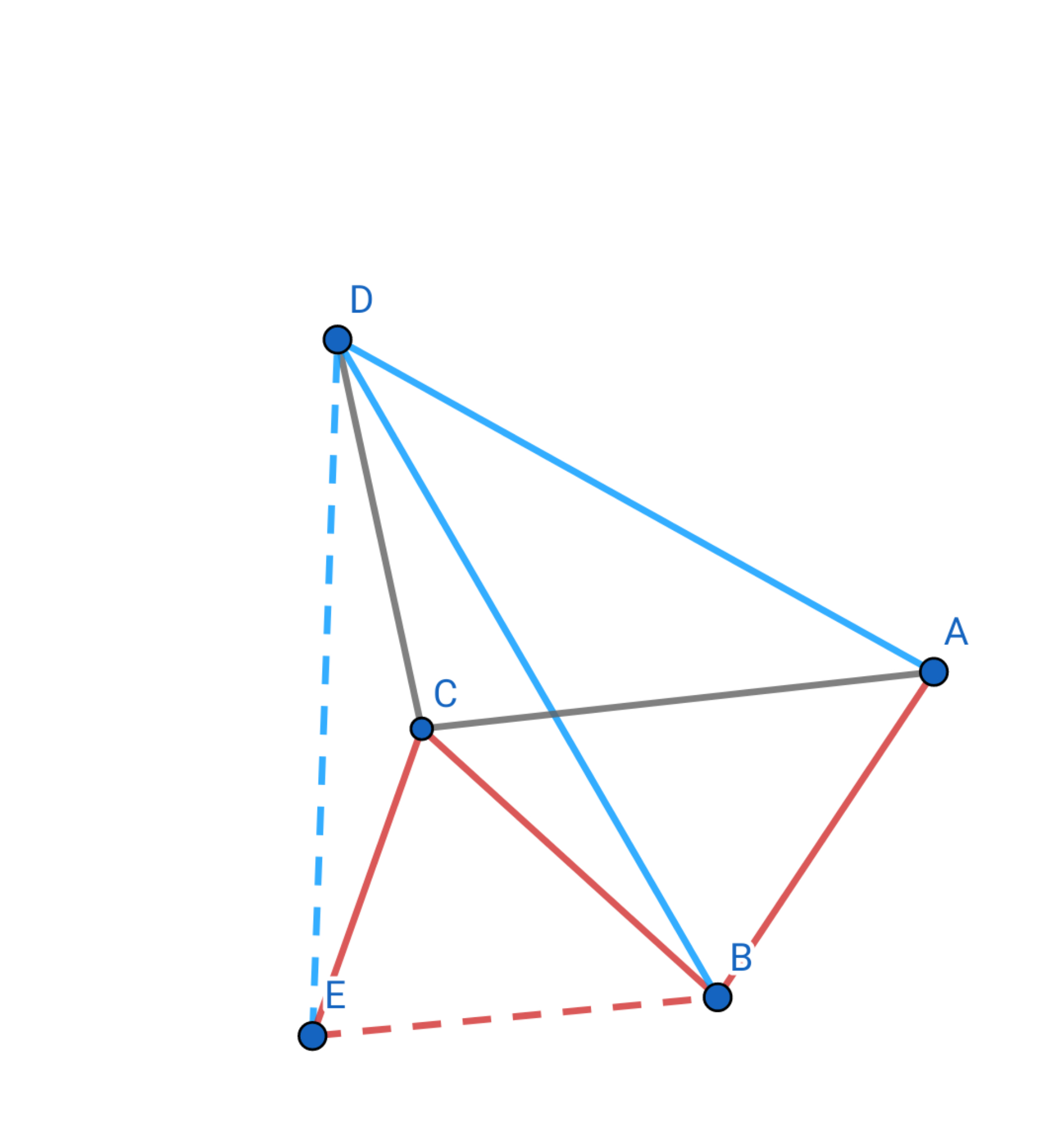 Пусть треугольник $DBE$ симметрично Треугольника $DBA$ относительно отрезка $DB$. тогда $DE=DB=DA$ и $BE=BC=BA$.