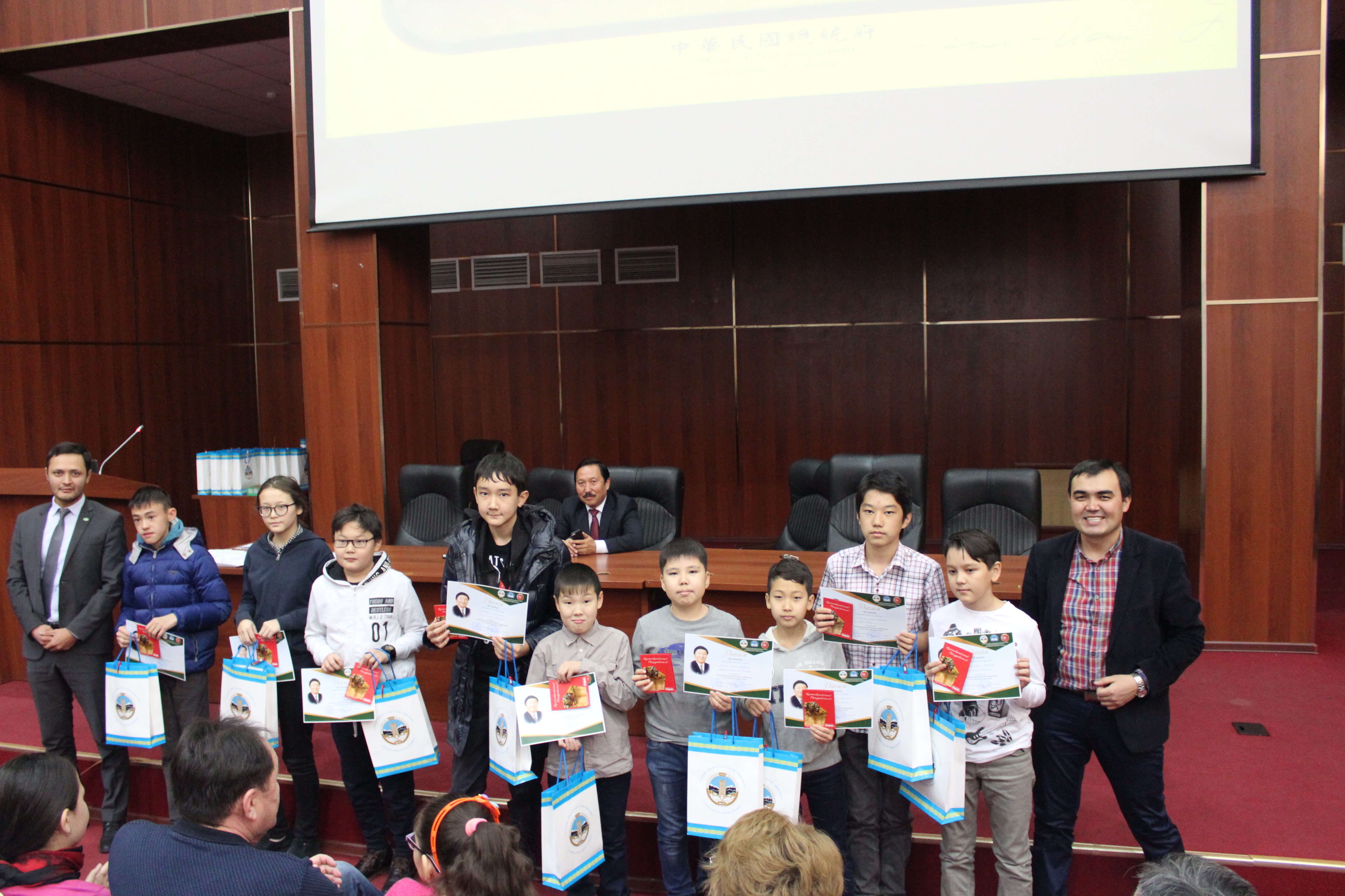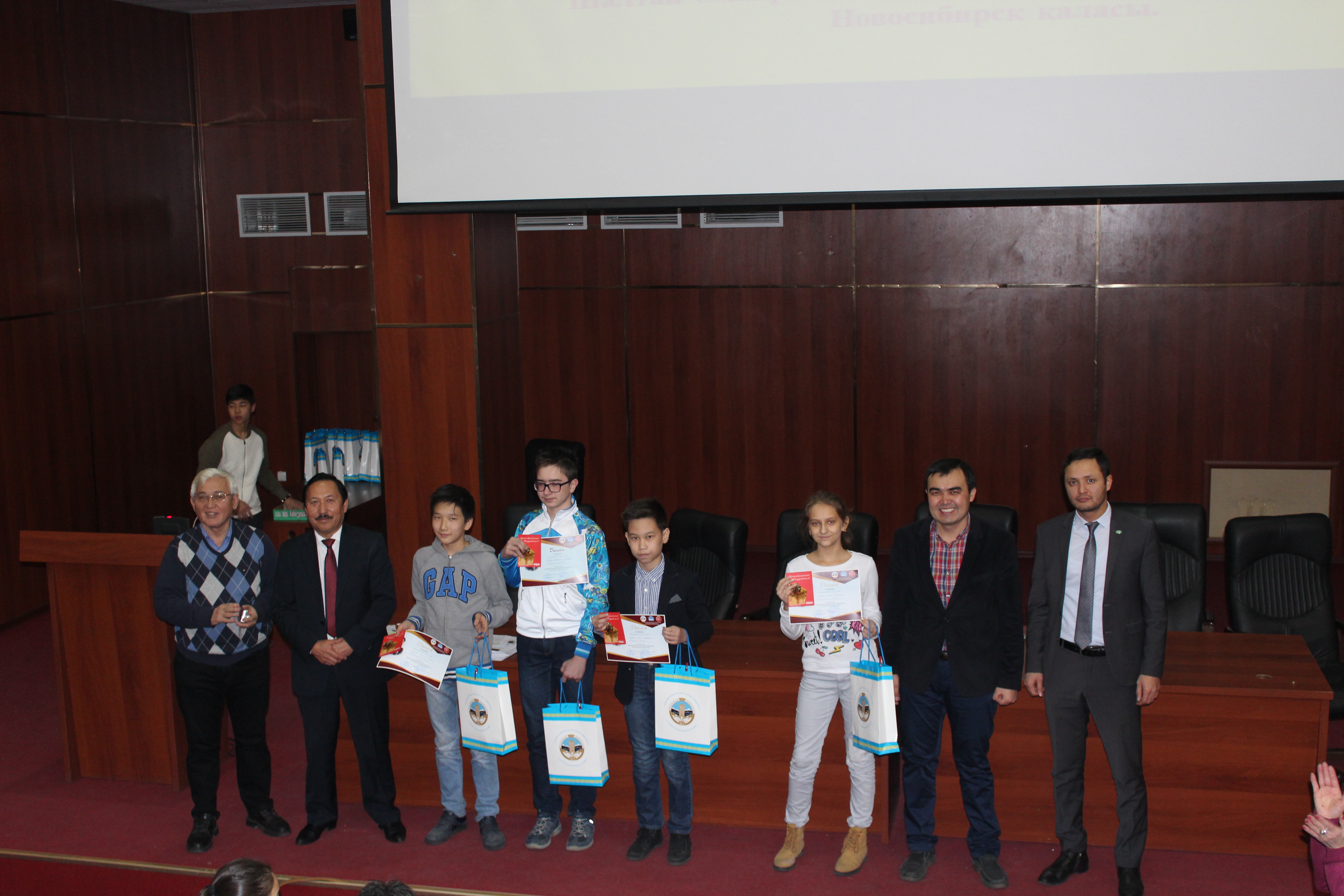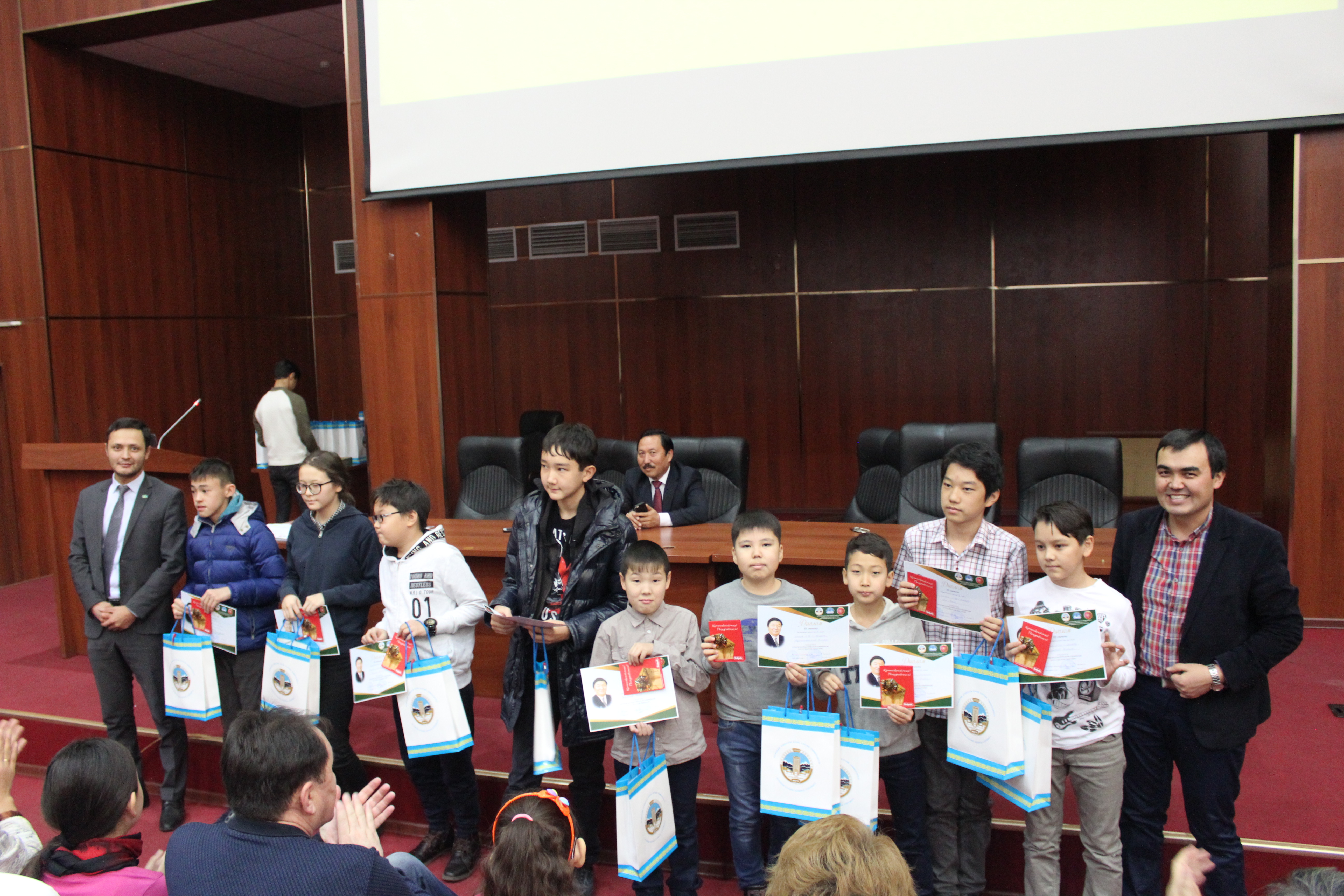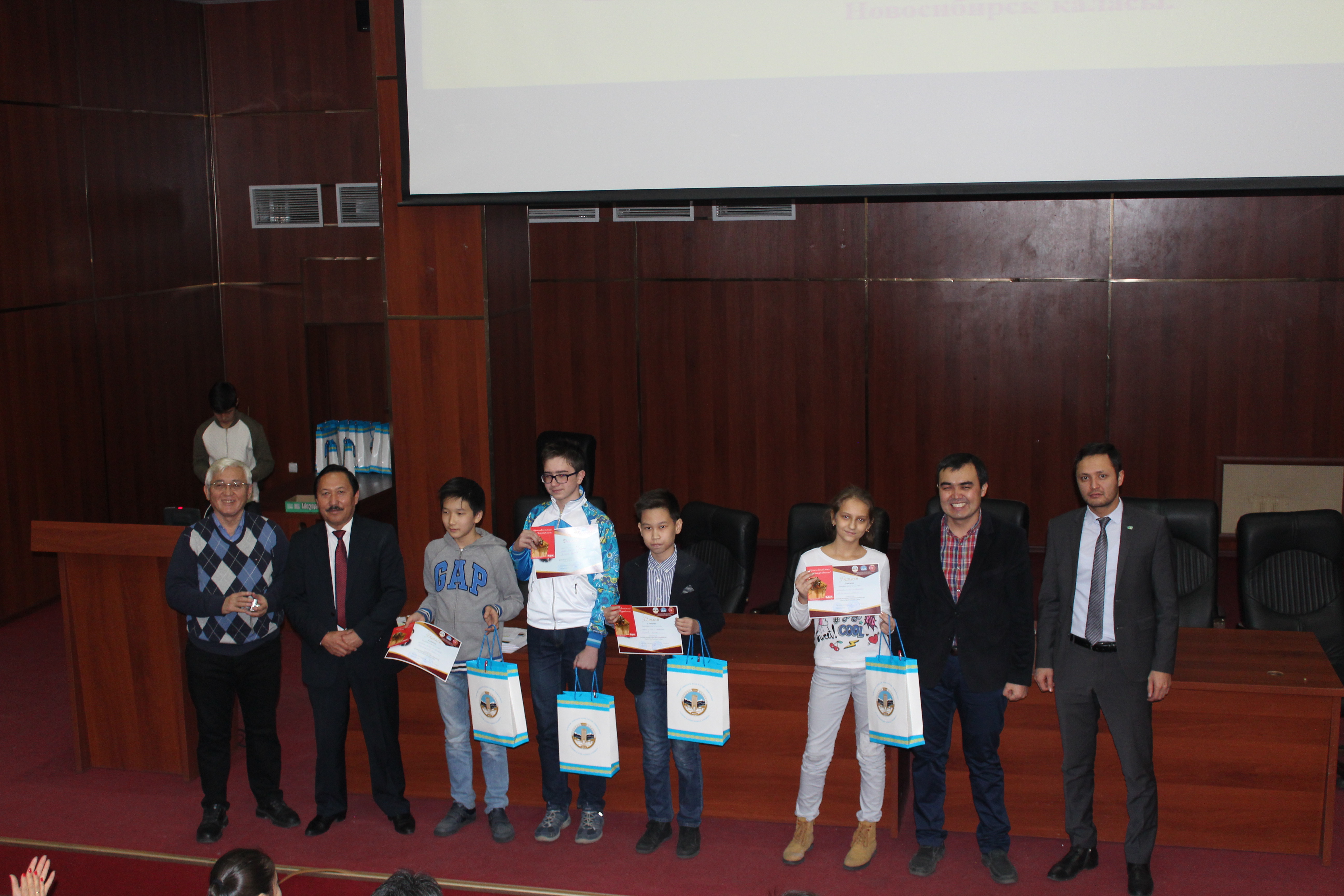 Все обладатели грамот за успешное участие были награждены сертификатами на сумму 3000 тенге на покупку книг. Обладатели дипломов 3, 2 и 1 были степени награждены подарочными сертификатами магазина электроники на сумму 10 000 тенге, 15 000 тенге и 20 000 тенге соответственно. Всем призерам от университета подарили футболки, бейсболки, календари и блокноты.