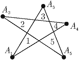 Задача №5. Треугольник $ABC$, в котором $AB=AC$, будем называть равнобедренным треугольником при вершине $A$. Дана звезда, в которой отмечены треугольники с номерами 1, 2, 3, 4, 5, имеющие вершины $A_1,A_2,A_3,A_4,A_5$ соответственно. Могло ли оказаться так, что треугольники 1, 3, 5 являются равнобедренными при вершинах $A_1$, $A_3$, $A_5$ соответственно, а треугольники 2 и 4 также являются равнобедренными, но не при вершинах $A_2$, $A_4$ соответственно.