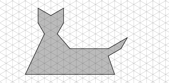 Начните с этого закрашенного многоугольника и, сделав не более чем 5 сгибов, получите из него лист в форме прямоугольника. В качестве решения нарисуйте линии сгибов и форму листа после каждого сгиба.