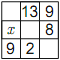 Задача №3. Здание разделено на 9 прямоугольных комнат. Измерили периметры шести комнат. Пять из шести результатов измерений показаны на рисунке снизу, а результат шестого обозначен буквой $x$. Чему равен $x?$