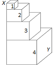 Задача №16. 4 кубика с размерами 1, 2, 3 и 4 расположены как на рисунке ниже. Найдите длину отрезка $XY$ которая проходит через кубик с размером 3.