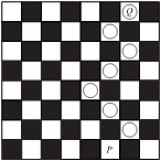 Задача №5. На шахматной доске $8 \times 8$ в нижнем ряду в клетке $P$ стоит фишка (см. рис.) На каждом ходу эту фишку можно переместить на одну клетку из белых, сверху по диагонали. Сколько существует путей из 7 ходов от $P$ до $Q$? (На рисунке показан пример одного такого пути.)