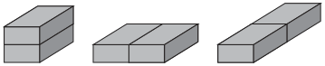 Есеп №7. Санжарда тікбұрышты параллелепипед пішініндегі екі бірдей кірпіш бар. Ол оларды Суретте көрсетілгендей, бір беттері арқылы жанастырып қояды. Нәтижесінде алынған үш дененің толық беттерінің аудандары тиісінше $72$ см$^2$, $96$ см$^2$ және $102$ см$^2$ болған. Бір кірпіштің толық бетінің ауданын (см$^2$) табыңыз.