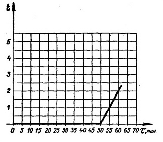 Задача №4. В ведре находится смесь воды со льдом. Масса смеси $ M= 10$ кг. Ведро внесли в комнату и сразу же начали измерять температуру $ t$ смеси. Получившийся график зависимости температуры от времени $ \tau $ изображен на рисунке. Удельная теплоемкость воды $ C = \mbox{4200 Дж/(кг}\cdot ^\circ \mbox{C})$, и теплота плавления льда $ \lambda = 3,\!4 \cdot 10^5 \mbox{Дж/кг}$. Определить, сколько льда было в ведре, когда его внесли в комнату. Теплоемкостью ведра пренебречь.