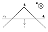Задача №4. Угол изготовлен из идеального проводника, а по его сторонам может скользить проводящий стержень так, что он все время остается перпендикулярным биссектрисе. Угол находится в однородном магнитном поле с индукцией $B=1$ Тл, перпендикулярном его плоскости. Найдите силу тока в цепи, если стержень движется с постоянной скоростью $\vartheta=5$ м/с. Сечение стержня $S=1$ мм$^2$, а его удельное сопротивление — $\rho=5\cdot 10^{-7}$ Ом$\cdot$м. (5 баллов)