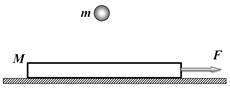 Задача №1. Пластинка массы $M=11,5$ кг движется по шероховатой поверхности (коэффициент трения $k=0,25$) под действием горизонтально направленной силы $F=30$ Н. На пластинке вертикально прыгает шарик массой $m$ так, что средняя скорость пластинки остается постоянной. Считая время удара пренебрежимо малым, найдите $m$. Ускорение свободного падения равно $g=10$ м/с$^2$. (5 баллов)