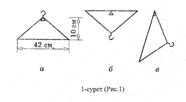 Задача №1. Дана проволочная вешалка, которая качается с маленькой амплитудой в плоскости чертежа относительно заданных положения равновесия (рис.1). В положениях $\text{а}$ и $\text{б}$ длинная сторона расположена горизонтально. Две другие стороны равны между собой. Во всех трех случаях ($\text{а}$ — $\text{в}$) возникают колебания с одинаковыми периодами. Где лежит центр масс и каков период колебания? Из эскизов не могут быть сняты другие данные, кроме размеров. В частности, распределение массы вешалки в деталях нам неизвестно. (6 баллов)