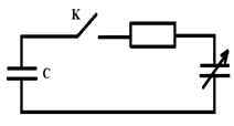 Задача №3. В схеме, изображенной на рисунке, в начальный момент ключ $K$ замкнут, а заряженные до напряжения $U=3$ B конденсаторы имеют одинаковую емкость $C=2$ мкФ. Разомкнув ключ, емкость переменного конденсатора уменьшают до значения $C/2$, после чего ключ $K$ замыкают. Затем, опять разомкнув ключ, емкость переменного конденсатора доводят до прежней величины $C$ и ключ $K$ замыкают. Какое количество теплоты выделится на сопротивлении? (8 баллов)