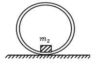 Задача №2. Небольшое тело массы $m_2$ закреплено на внутренней поверхности тонкого жесткого обруча, радиус которого равен $R$, а масса $m_1$. Обруч катится без скольжения по горизонтальной плоскости. Какую скорость должен иметь центр обруча в тот момент, когда тело $m_2$ находится в нижнем положении, чтобы обруч подпрыгивал, когда тело $m_2$ будет находиться в верхнем положении? Ускорение свободного падения $g$. (8 баллов)