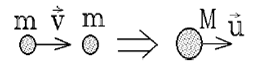 Задача №4.  [7 баллов]. Релятивистская частица с массой $m$ и кинетической энергией $K$ налетает на покоящуюся частицу той же массы. Найти массу $M$ и скорость $\vartheta$ составной частицы, образовавшейся в результате соударения (см.рисунок).