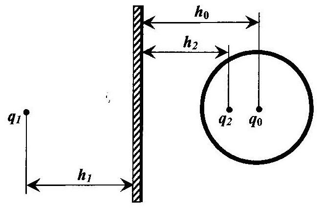 - Присутствие заряда $q_{1}$ нарушает эквипотенциальность проводящей сферы. Это положение можно исправить помещением другого заряда $q_{2}$ внутри сферы таким образом, чтобы суммарный вклад от $q_{0}$, $q_{1}$ и $q_{2}$ восстановил эквипотенциальность проводящей сферы. Определите $q_{2}$ и его положение $h_{2}$;