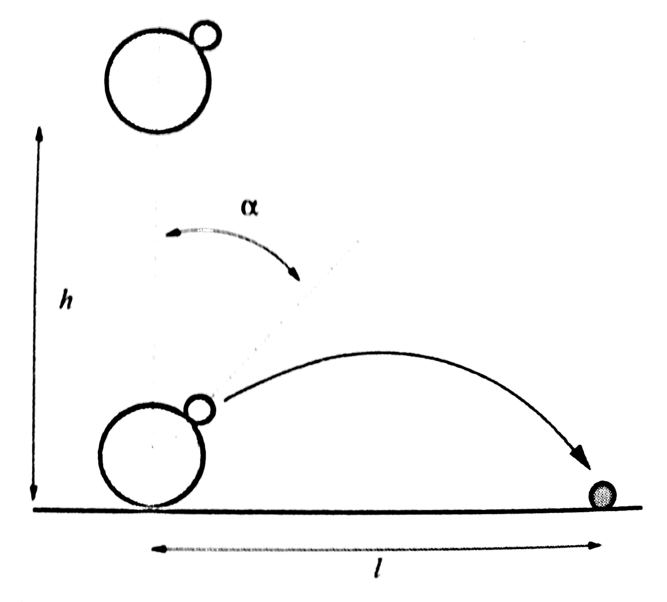 - На каком расстоянии $l$ от точки столкновения с шаром для боулинга упадет мяч для гольфа?