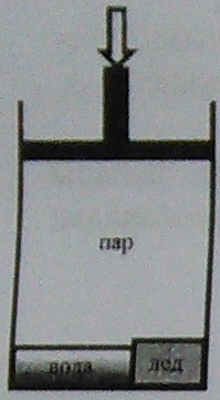 Часть А (4.0 балла) В теплоизолированном цилиндре с поршнем находится в равновесии $10$ г льда, $3$ г воды и $2$ г водяного пара. Вдвигая поршень, объём сосуда уменьшают вдвое.