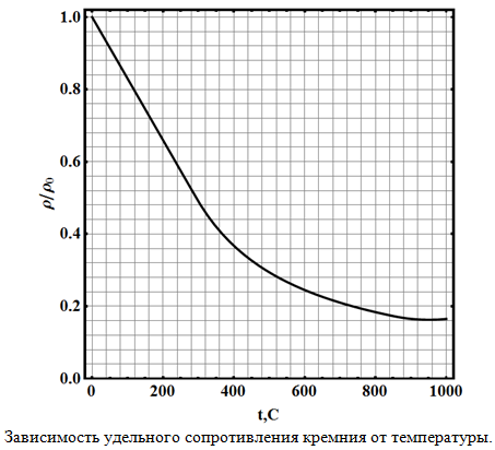 9. Тұрақтандырғыш пен оған параллель жалғанған $R_1=10$ Ом резистордан тұратын тізбектің вольтамперлік сипаттамасын тұрғызыңыз. Графикті 6-шы пункта алынған суретке тұрғызыңыз. Тұрғызған тәуелділіктерді негіздеңіз (дәлелдеңіз); Жоғарыда қарастырылған моделдегі тұрақтандырғыш кернеуді тұрақтандыра алмайды. Нақты тұрақтандырғышта температураның жеткілікті үлкен мәндерінде меншікті кедергінің температурадан тәуелділігі сызықты болмайды. Нақты жағдайға сәйкес келетін $\rho(t)$ тәуелділік төменгі графикте келтірілген.