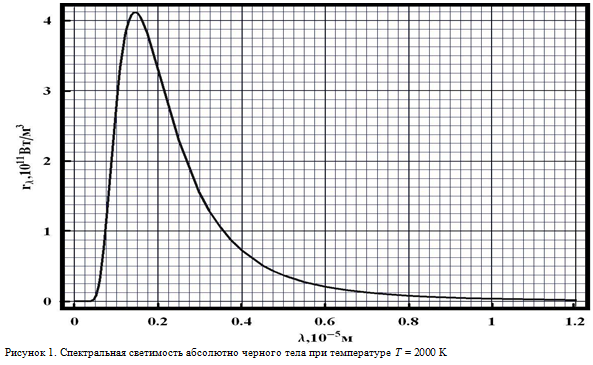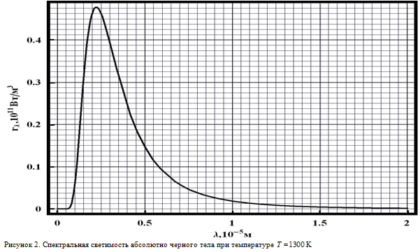 Есеп №3.  Тепловое излучение (10 баллов) Электромагнитное излучение, испускаемое нагретыми телами, называется тепловым. Тепловое излучение характеризуется интегральной и спектральной светимостью. Интегральной светимостью тела $R$ называется суммарная энергия излучения, ис-пускаемого с единицы площади поверхности тела в единицу времени. Спектральной светимостью тела $r_{\lambda}$ в узком интервале длин волн от $\lambda$ до $\lambda+\Delta \lambda$ называется отношение светимости $\Delta R$ в данном спектральном диапазоне к спектральной ширине этого диапазона $r_{\lambda}=\frac{\Delta R}{\Delta \lambda}$. Интегральная и спектральная светимости тела зависят как от свойств самого тела, так и от его температуры. Светимость тела связана с его способностью поглощать падающее электромагнитное излучение. Чем лучше тело поглощает падающее на него излучение, тем сильнее оно будет излучать при нагревании. Если тело полностью поглощает все падающее на него излучение, то такое тело называется абсолютно черным. Распределение энергии излучения черного тела по спектру (то есть его спектральная светимость) хорошо изучено экспериментально и описано теоретически. На рисунках $1$ и $2$ построены кривые спектральной светимости абсолютно черного тела при двух различных температурах:$T_1=2000$ К (рис. 1) и $T_2=1300$ К (рис. 2).