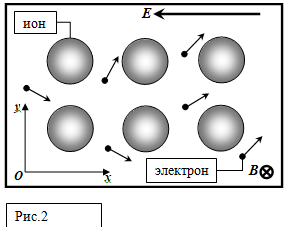 4. [1 балл] Какое количество теплоты $Q_{V}$ передают электроны кристаллической решетке в $1$ м$^3$ проводника за $1$ с. Ответ выразите через $e$, $E$, $n$, $m$ и $\tau$. Магнетосопротивление Важным гальваномагнитным явлением является изменение проводимости проводника, помещенного в поперечное магнитное поле. Это явление называется эффектом магнетосопротивления. Как показывает опыт, относительное изменение удельной проводимости $\Delta \sigma /\sigma$ при не очень сильных магнитных полях с индукцией $B$ выражается формулой $$\frac{\Delta \sigma}{\sigma}=\frac{\sigma (B)-\sigma(B=0)}{\sigma (B=0)=\mu B^{\nu}}, \eqno(5)$$ где $\mu$ и $\nu$ — некоторые постоянные. Используя модель Друде, описанную выше, выполните следующие задания. Внимательно изучите второй рисунок $2$, представленный выше, так как на нем представлены система координат и направления всех векторов.