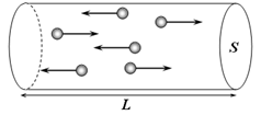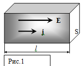 Рассмотрим малый элемент проводника длиной $l$ и поперечным сечением $S$, к концам которого приложена разность потенциалов $U$. Пусть $\sigma$ — удельная электрическая проводимость вещества, которая является величиной, обратной удельному электрическому сопротивлению $\rho$. Электрическое сопротивление элемента проводника и сила тока, текущего по нему, равны $$R=\rho\frac{l}{S}=\frac{l}{\sigma S}, \hspace{5px} I=jS,\eqno(2)$$ где введена плотность тока $j$, представляющая собой количество заряда, проходящего в единицу времени через единицу поперечного сечения проводника и зависящая от концентрации электронов и их средней скорости упорядоченного движения.