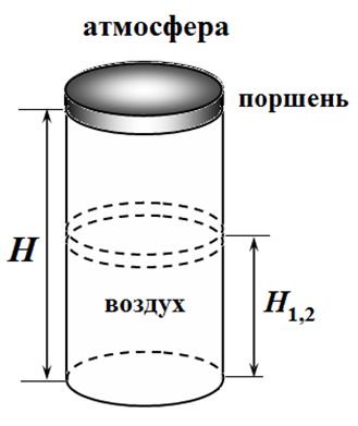 2.3 [0.5 балла] Найдите высоту $H_1$. Ответ выразите через $H$, $\gamma$ и $\alpha=Mg/p_0S$. Найдите численное значение $H_1$.