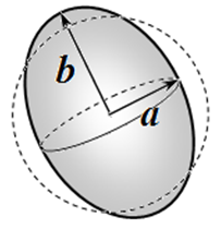 Для простоты примем, что сферическое ядро испытывает такие деформации, при которых его поверхность становится поверхностью вытянутого эллипсоида вращения, который в декартовых координатах описывается уравнением $$\frac{x^2}{a^2}+\frac{y^2}{a^2}+\frac{z^2}{b^2}=1,\quad (4)$$ где $a$ — малая, а $b$ — большая полуоси эллипсоида соответственно. Объем вытянутого эллипсоида вращения определяется выражением $$V=\frac{4}{3}\pi a^2b,\quad (5)$$ а площадь его поверхности может быть вычислена по формуле $$S=2\pi a \left( a+\frac{b^2}{\sqrt{b^2-a^2}}arc\sin \left( \frac{ \sqrt{b^2-a^2}}{b}\right) \right).\quad (6)$$ Пусть сферическое ядро испытывает такую деформацию, что $b=R(1+\epsilon)$ и $a=R(1-\lambda)$, причем $\epsilon,\lambda\ll 1$, а $R$ — начальный радиус ядерной капли.
