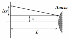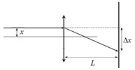 1.3 Расположите экран на некотором расстоянии $L$ за линзой. Измерьте зависимость смещения $\Delta x$ преломленного луча на экране от смещения линзы $x$. Постройте график полученной зависимости;