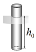 А1. Узкая цилиндрическая пробирка со смещенным центром масс плавает вертикально в воде в очень широком сосуде. В состоянии равновесия пробирка погружена в воду на глубину $h_0$. Площадь поперечного сечения пробирки равна $S_0$. Определите период малых вертикальных колебаний пробирки.
