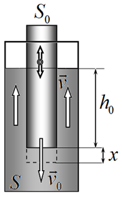 А2.2. Вблизи положения равновесия скорость пробирки равна $\vartheta_0$. Выразите кинетическую энергию системы через скорость пробирки $\vartheta_0$, глубину погружения $h_0$, площади сечений $S_0$, $S$, плотность воды $\rho$. Считайте, что в зазоре между пробиркой и стенками сосуда вся жидкость движется с одинаковой скоростью $\vartheta$.