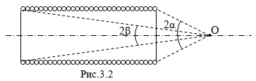 b) Найдите индукцию магнитного поля на оси соленоида в точке, из которой диаметры торцов видны под углами $2\alpha$ и $2\beta$. (см. Рис.3.2)